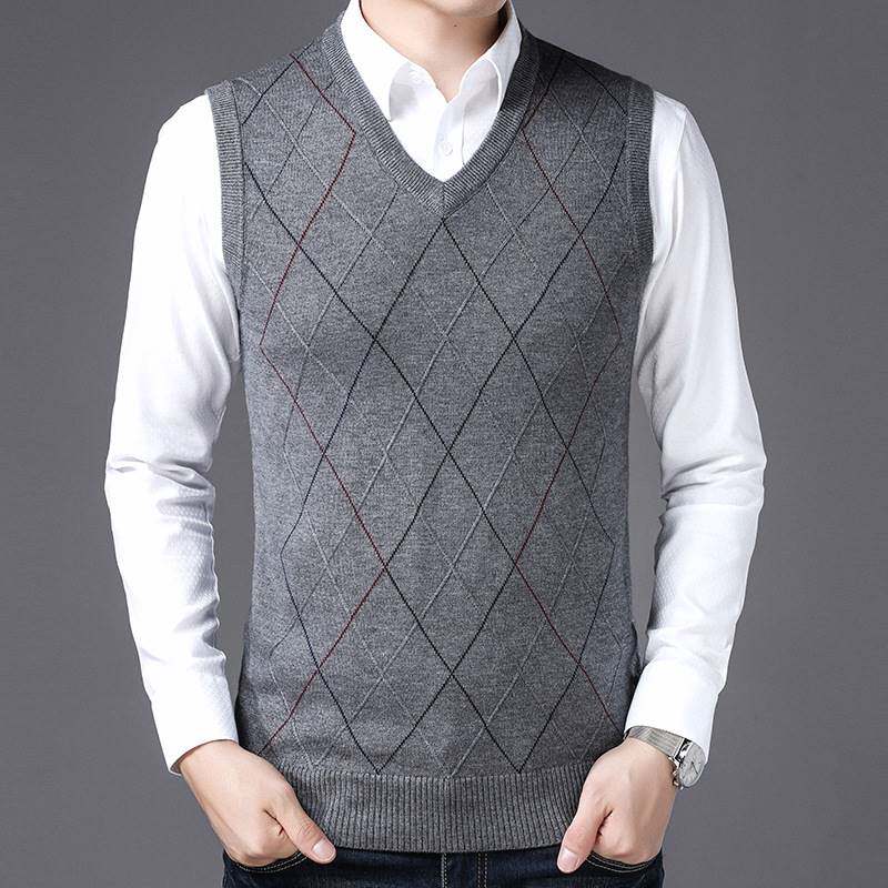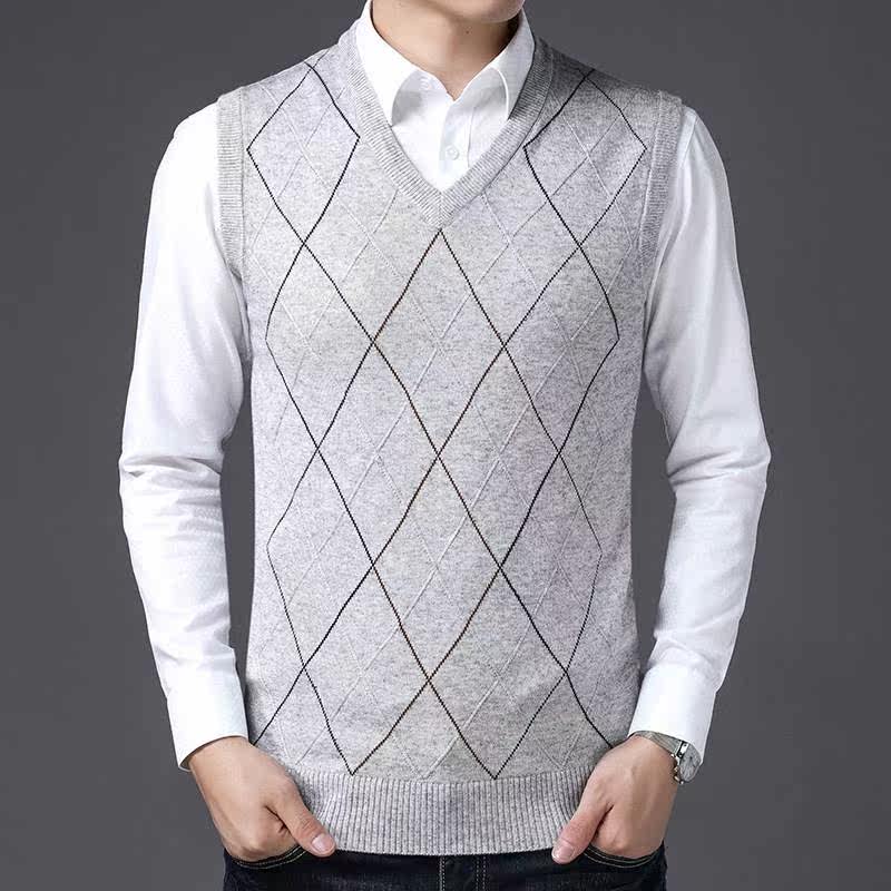 上品な菱形の編み込み柄が特徴的なメンズ ベストです。