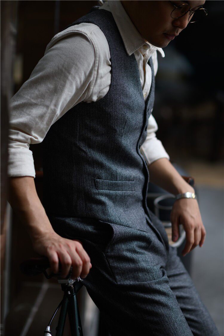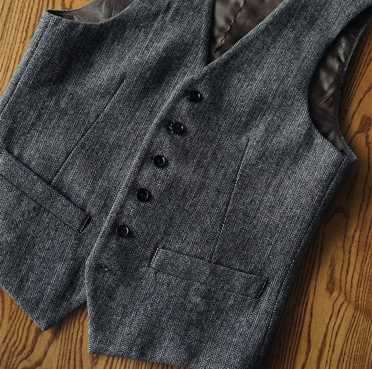 洗練されたヘリンボーン柄が特徴的なベストです。